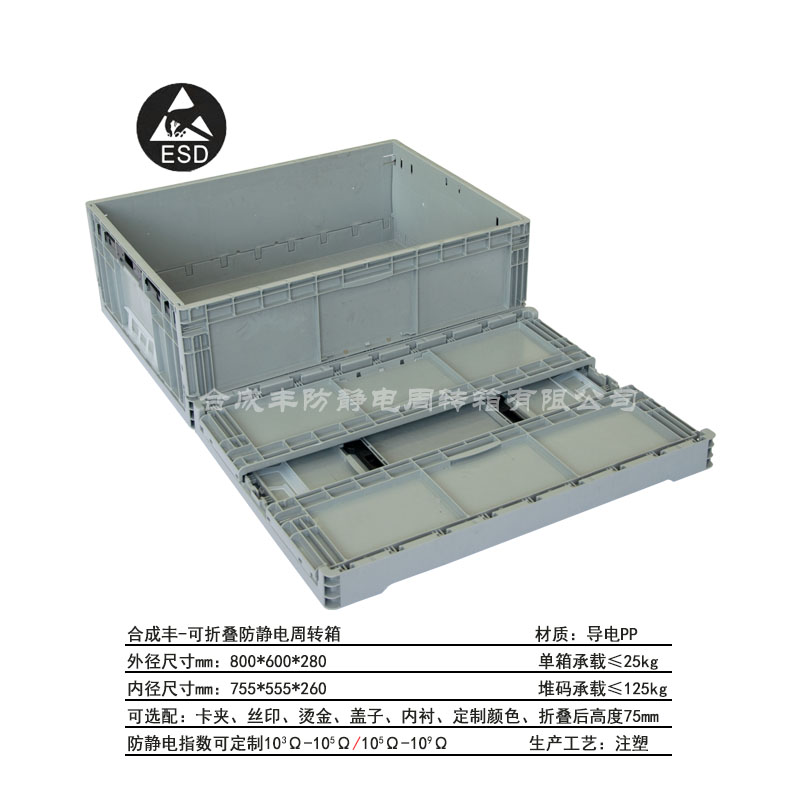 編 號:合成豐-可折疊防靜電周轉(zhuǎn)箱 8628 工藝: 注塑 單箱承載:30kg